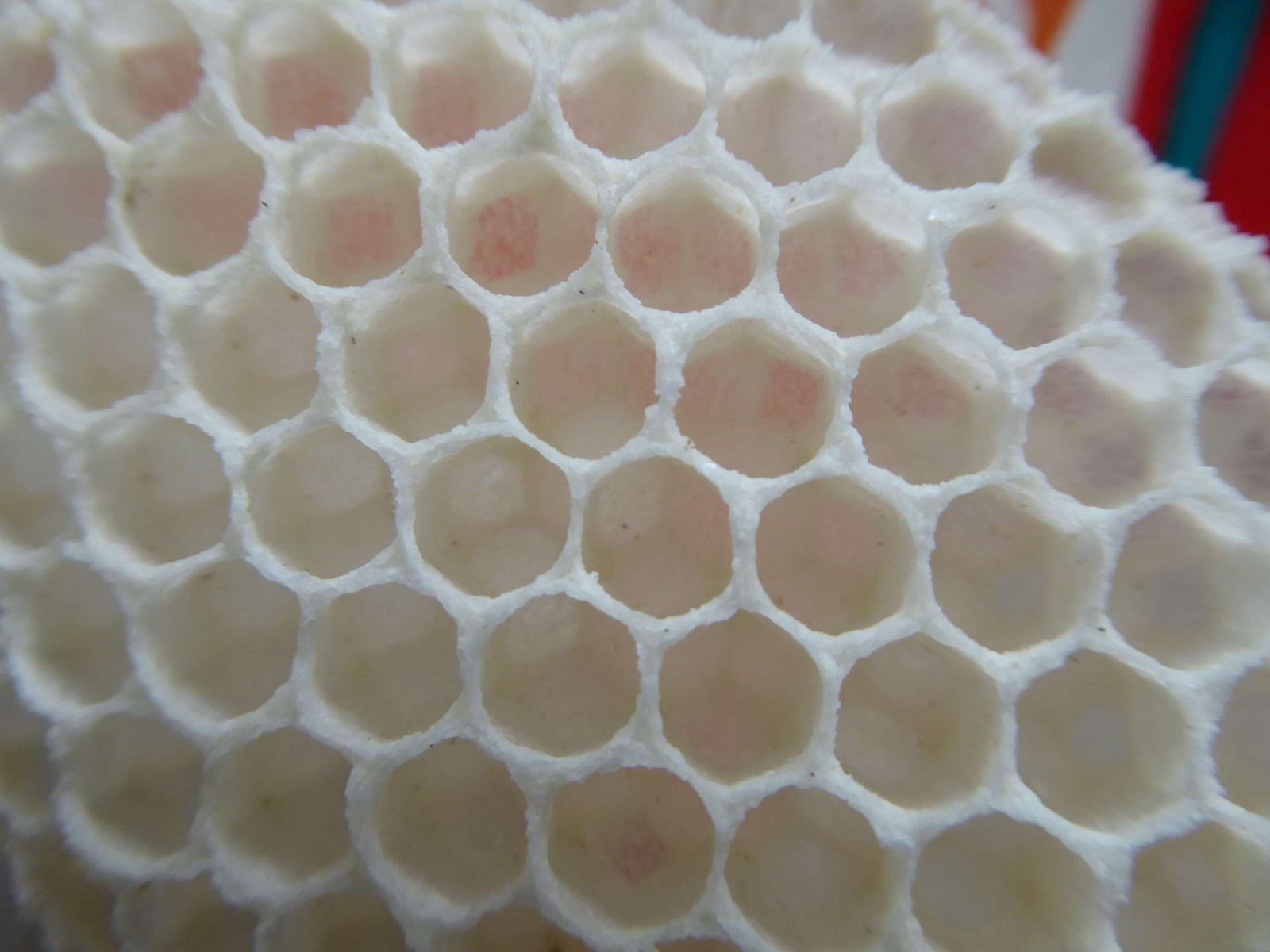 The bees arrived in their nuc box (a small hive used to transport them) and within minutes Neel had suffered his first sting (apparently it is better to get this over and done with and to be fair he wasn’t wearing his suit). The next morning (fully suited up) Neel helped transfer the bees from the nuc box to the hive. This involves shaking the frames over the hive and then letting the remaining bees in the nuc box find their own way. We then left them with a sugar syrup meal to keep them going whilst they are making themselves at home and building cells for the first larvae. We discovered that overnight in the nuc they had already started building wax cells!