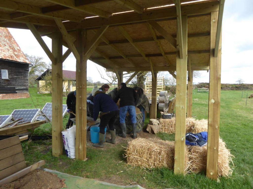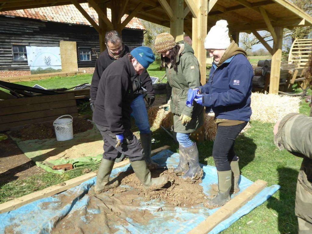 Here is a description of what we got up to on the day; hopefully it will inspire you to have a go at building with the materials in your own garden. I can highly recommend building with a group of friends as it is a lot of fun and many hands really do make the work lighter. If you have a project in mind do get in touch with Sarah too, as she is a fabulous tutor and always keen to help new earth buildings take shape – Orchard Barn.