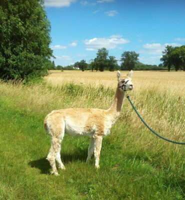 It is almost a year since we walked into the Farm Business Innovation Show, innocent of the charms of alpacas, and set on adding goats to our growing diversification plans. We had been talking about grazing the meadow opposite the campsite as part of its management, whilst at the same time farming a product that we could use or sell. Alpacas had been mentioned a couple of times but I couldn’t really see the point in them. What do they actually do, other than look a bit odd? In any case, they are not a proper farm animal. And then we walked along an aisle at the far corner of the Show and I met one.
