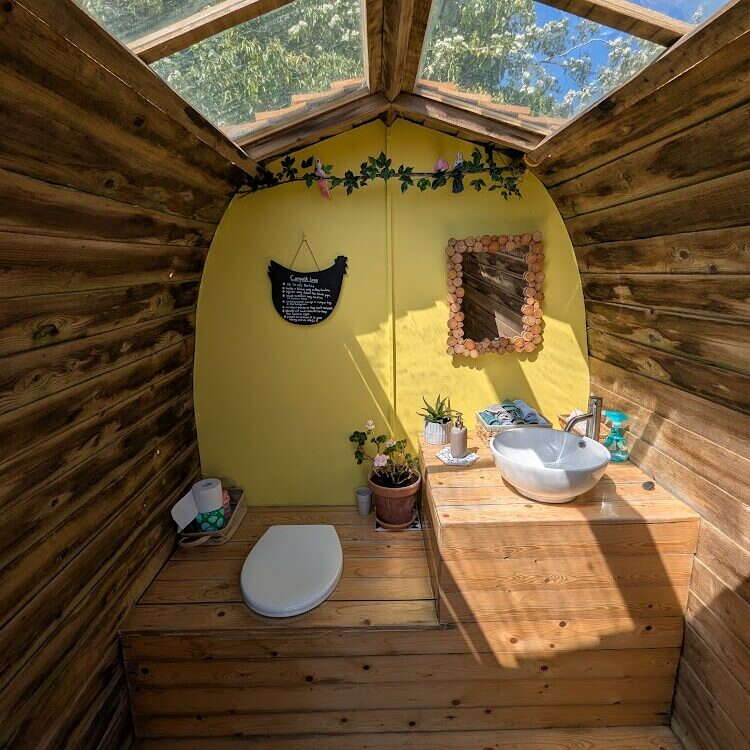 We want to do our best to help fuel the idea that composting toilets can be both practical and beautiful. Our toilet design separates liquids and solids and by providing good ventilation we can ensure that they stay smell free. Each of the two loo huts has its own sink unit with cold water, a mirror and environmentally friendly handwash. We provide individual hand towels and recycled toilet paper from ‘Who Gives a Crap’. Over the years we have camped in tents that are too small to stand up in, so we have also made sure that there is plenty of room to get changed or gather all of the children for the ceremonial brushing of teeth.